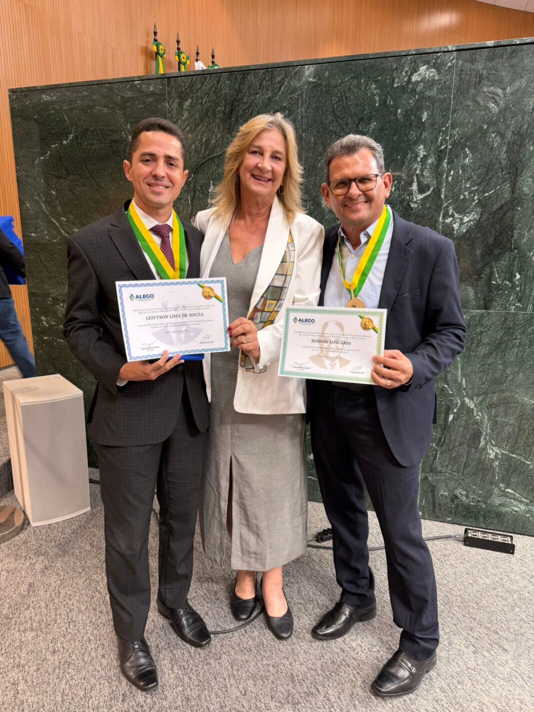 A deputada estadual Dra. Zeli (UB) participou, na noite da última terça-feira (2), da sessão solene realizada no Plenário Iris Rezende Machado, na Assembleia Legislativa de Goiás, dedicada a homenagear líderes religiosos com as comendas Bispo Abigail Carlos de Almeida e Pastor Albino Gonçalves Boaventura. A parlamentar indicou dois pastores de Valparaíso de Goiás para receberem as honrarias: pastor Leivyson Lima, da Igreja Assembleia de Deus Mensageiros de Cristo, e pastor Jedison Januário, da Igreja Comunidade das Nações.