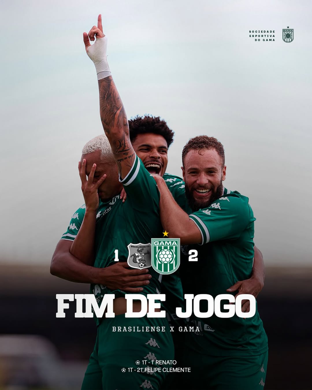 O Gama levou a melhor no primeiro Clássico Candango de 2026. Na tarde deste domingo (25), pela quarta rodada do Candangão, o Alviverde venceu o Brasiliense por 2 a 1 e assegurou a liderança da competição