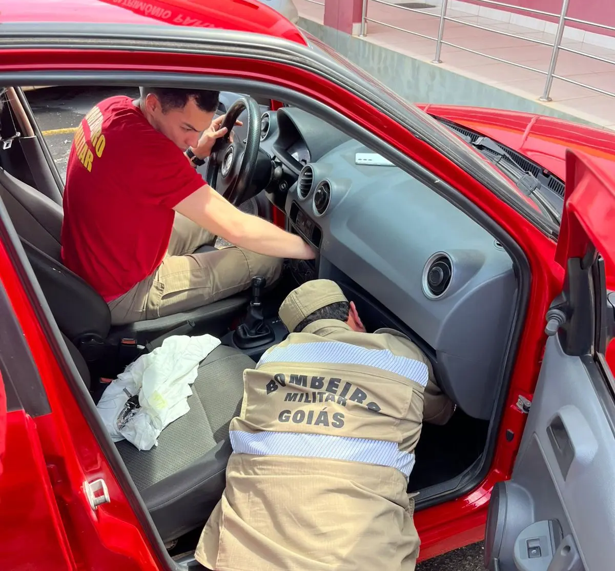 Segundo o relato, o cachorro estava brincando dentro do veículo e acabou entrando no painel, onde ficava o som automotivo. Sem conseguir retirá-lo, o veículo foi levado diretamente ao quartel, onde a guarnição do CBMGO prontamente resolveu a situação.