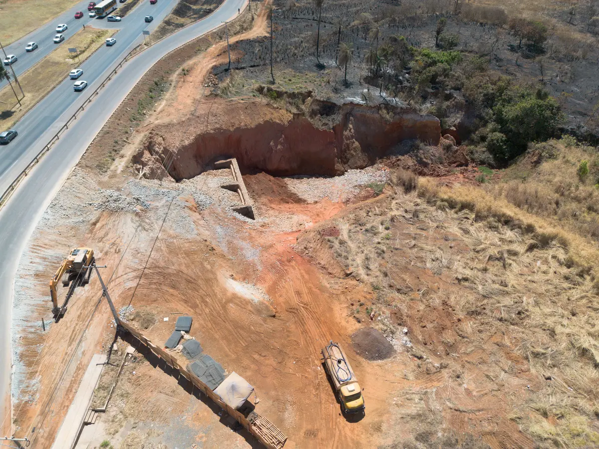 Conhecida como “voçoroca”, a cratera já alcança cerca de 500 metros de extensão e 20 metros de profundidade, sendo considerada um dos pontos mais críticos da rodovia federal, que liga o Entorno do Distrito Federal à região Sudeste do país e recebe, em média, mais de 100 mil veículos por dia.
