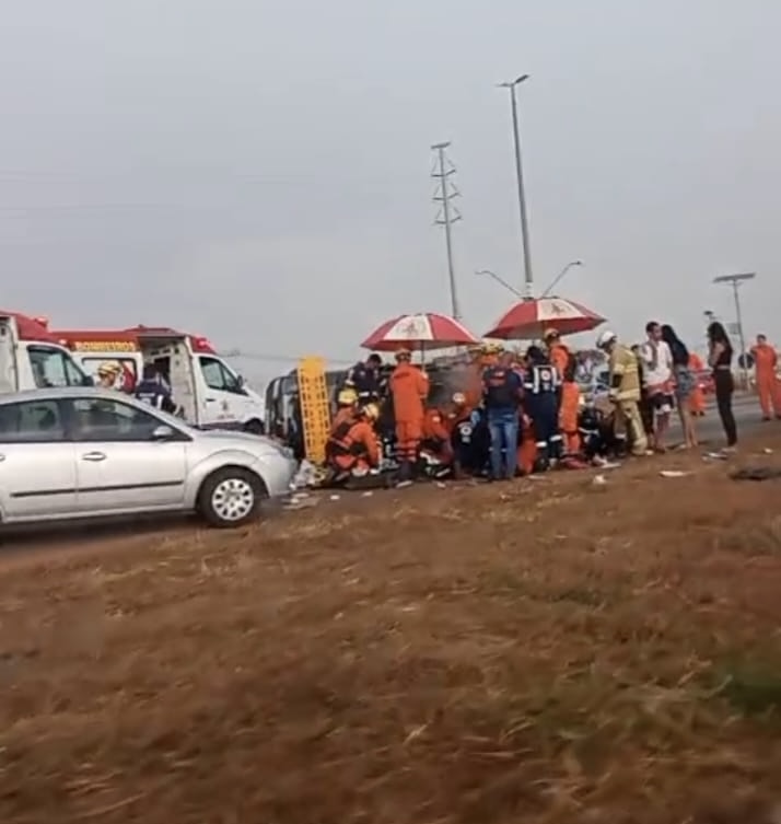 Um grave acidente na BR-040, na noite desta quarta-feira (17/9), resultou na morte de uma criança de 8 anos e deixou o pai dela ferido. Os dois foram arremessados para fora do carro quando o motorista perdeu o controle da direção e o veículo tombou, próximo ao posto da Polícia Rodoviária Federal (PRF), no sentido Luziânia (GO).